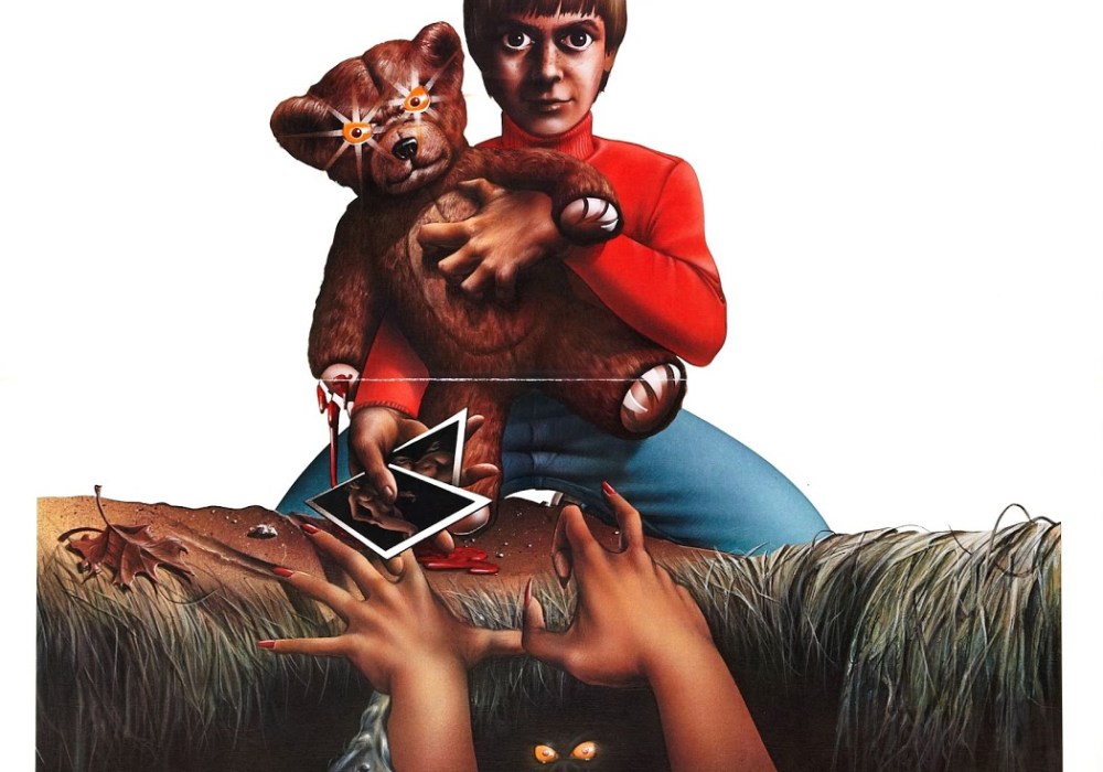 Many years later in a Toronto used bookstore, I happened upon the spine of a paperback entitled Teddy, by John Gault. Taking a look at the cover to pass judgment I was struck by the illustration of a child holding a teddy bear with demonic lights shining from its eyes, and a very familiar tagline. Then I looked at the back cover and nearly fainted – who else but Teddy’s unforgettable askew-eyed face was staring back at me?
